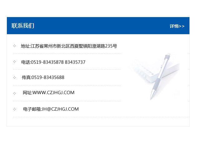 地址:常州市新北區友邦商務大廈1幢16、17層  電話:0519-85101652  傳真:0519-85112595  郵編:213022  網址:www.cz-jiayue_cn.233hj.com  郵箱:xiajifengaa@163.com